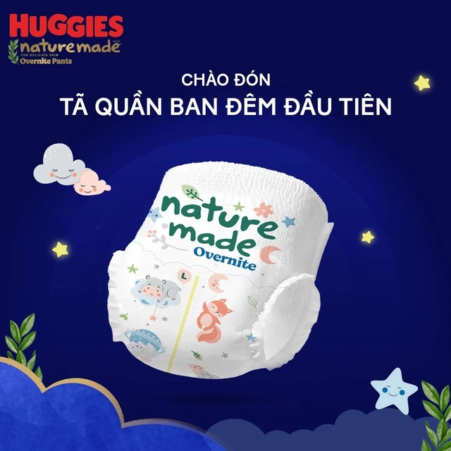 Tã quần chuyên dụng cho ban đêm Huggies Naturemade thiết kế cải tiến
