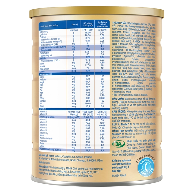 – Chỉ cho bé yêu dùng tối đa trong vòng 1 giờ, sau đó phải đổ bỏ phần sữa Similac số 2+ còn thừa.