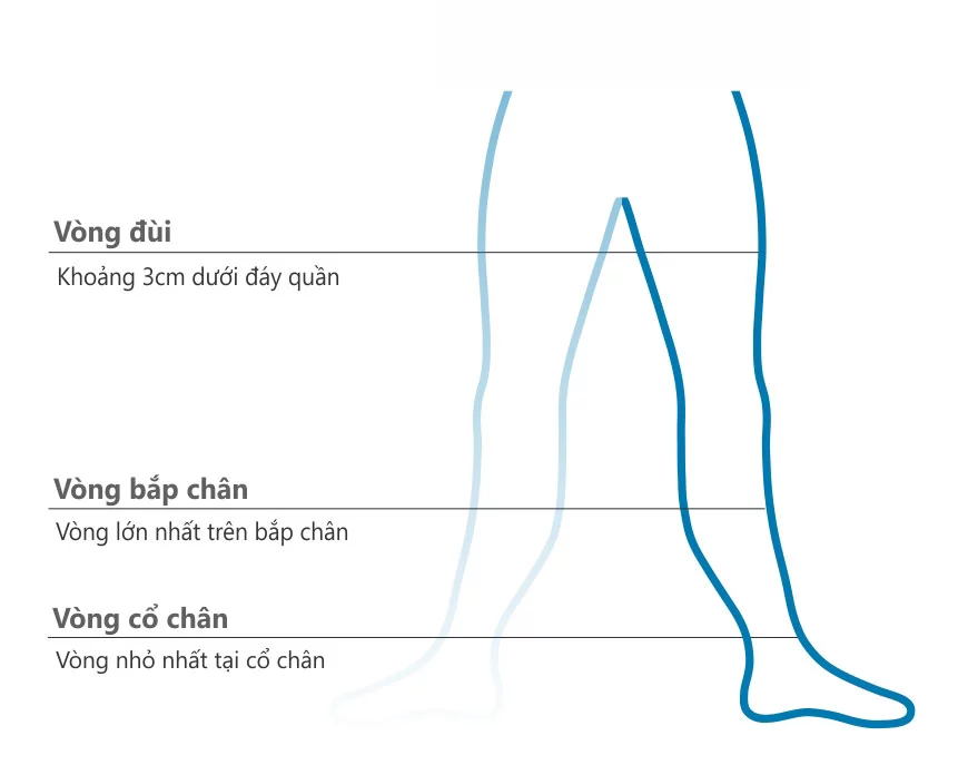 Để chọn size vớ gối phù hợp bạn cần lấy số đo vòng cổ chân và vòng bắp chân, theo hướng dẫn như hình bên dưới.